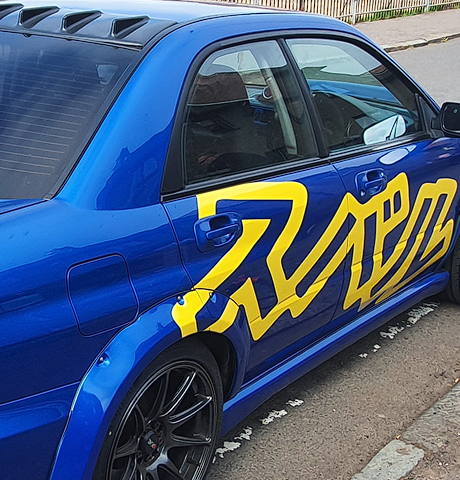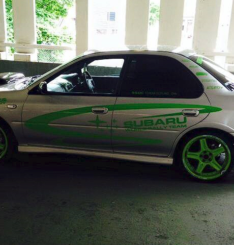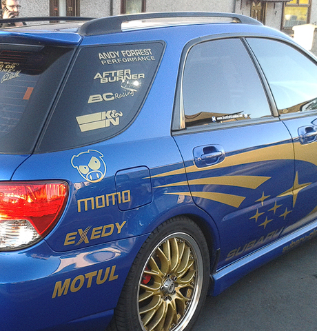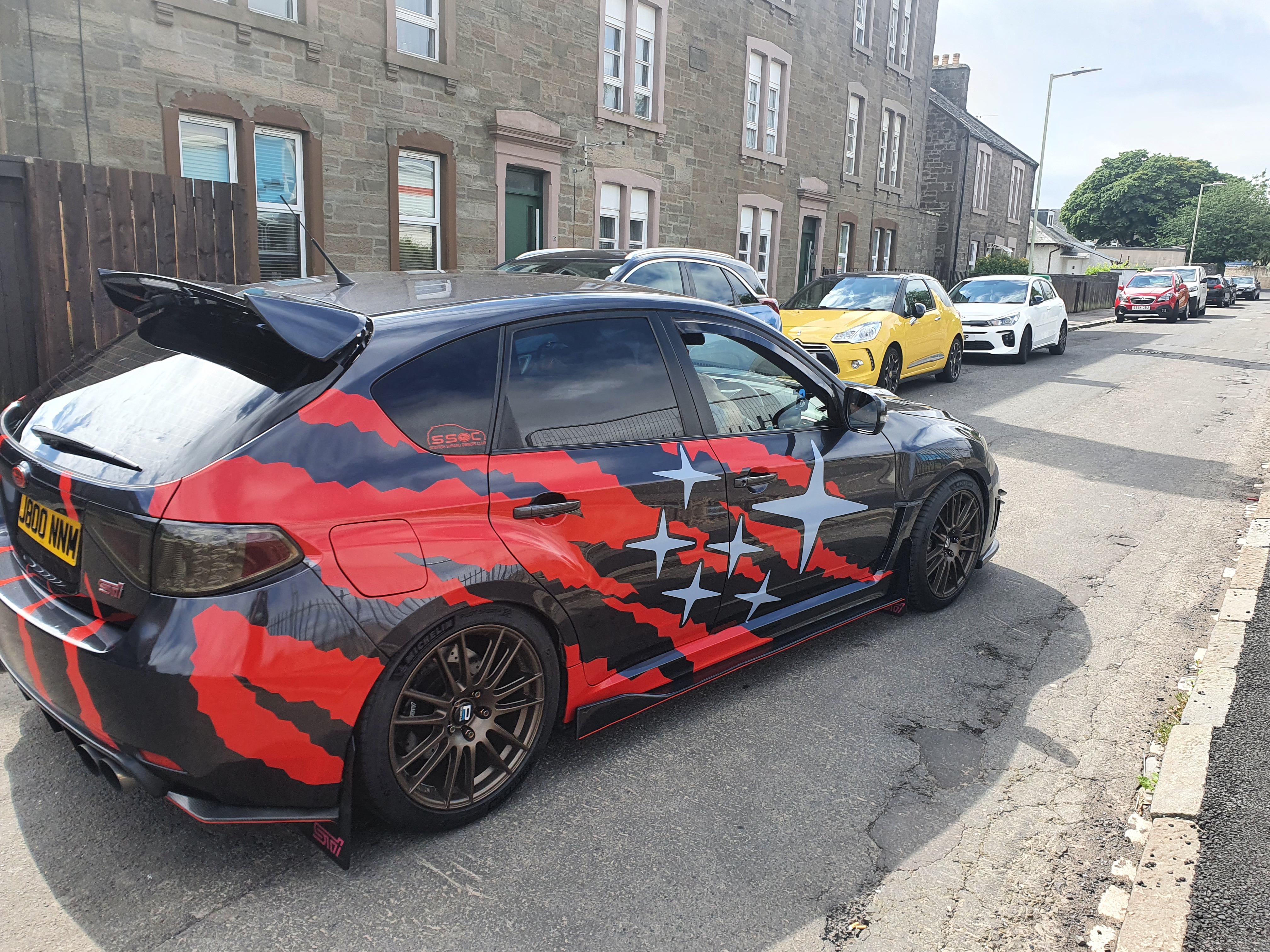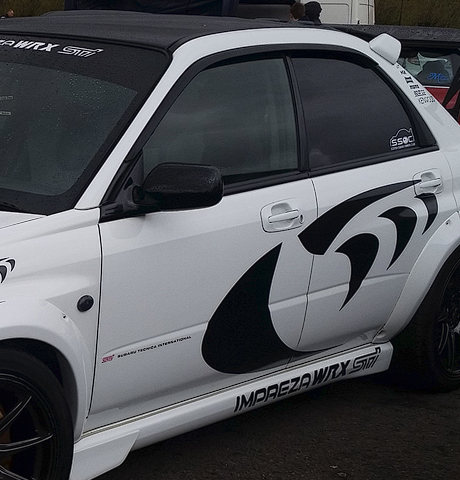Branding, Vehicle GraphicsSubaru Impreza half wrapped in Gloss 6D carbon.