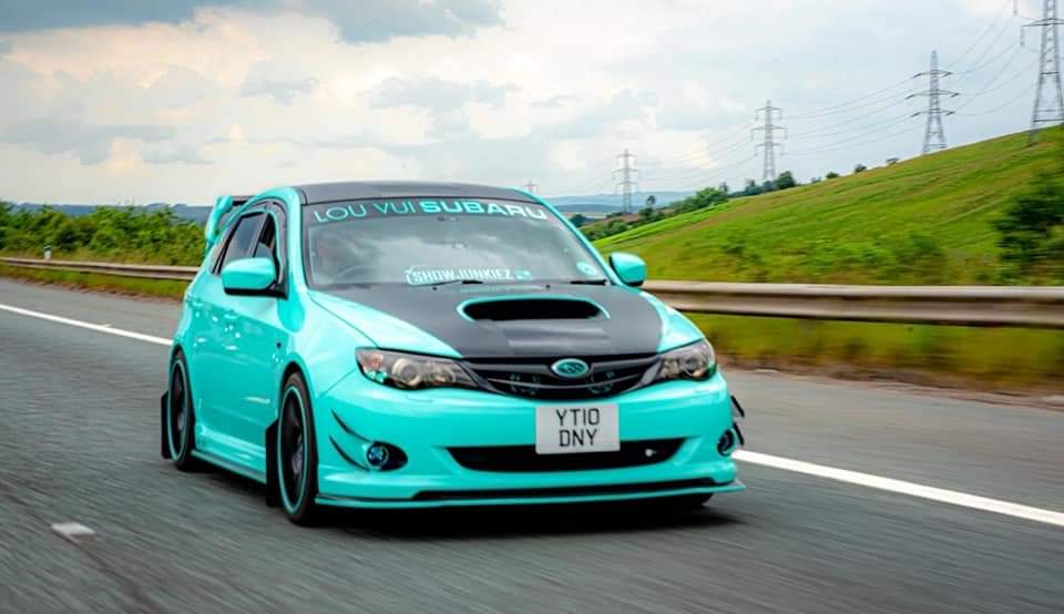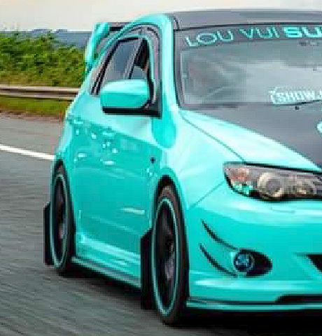 Subaru Impreza wrapped in Tiffany with sating and gloss black accents finished off with LV embossment.